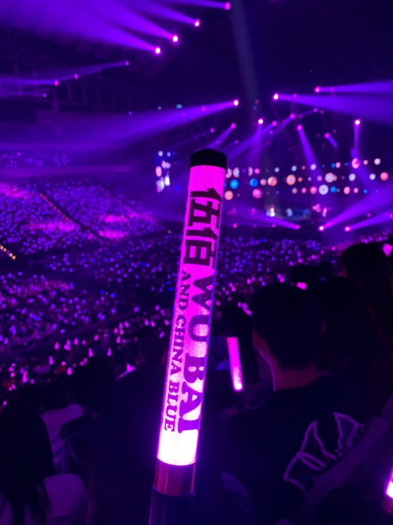 ↓↓↓台灣場的紀念螢光棒 超美 看到照片才想起來台灣的螢光棒燈會有紫色 日本好像沒有紫色(日本主要是綠 藍 橘)